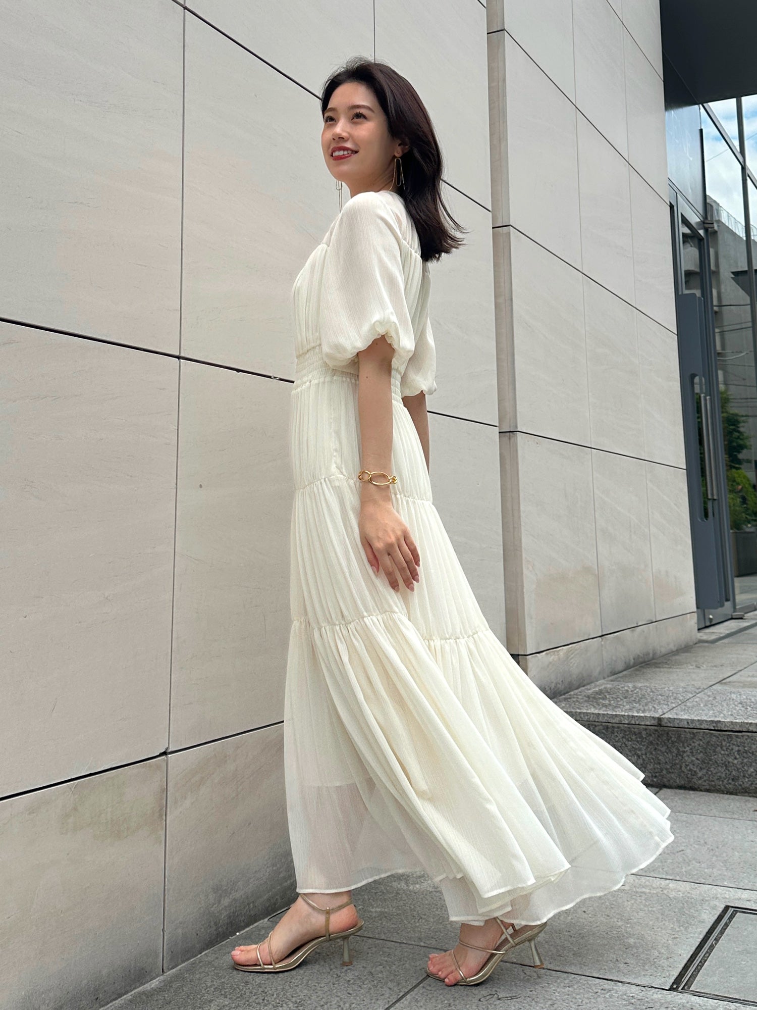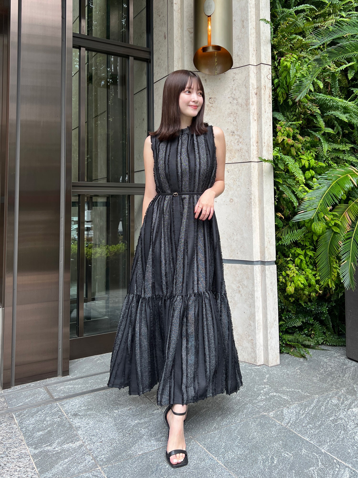 The theme is to spend an elegant time at the hotel wearing a jacquard tiered dress. Leave your luggage behind and go out for a while and enjoy lunch.