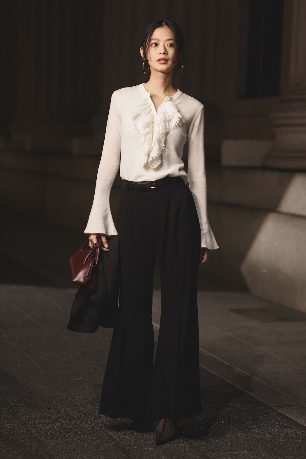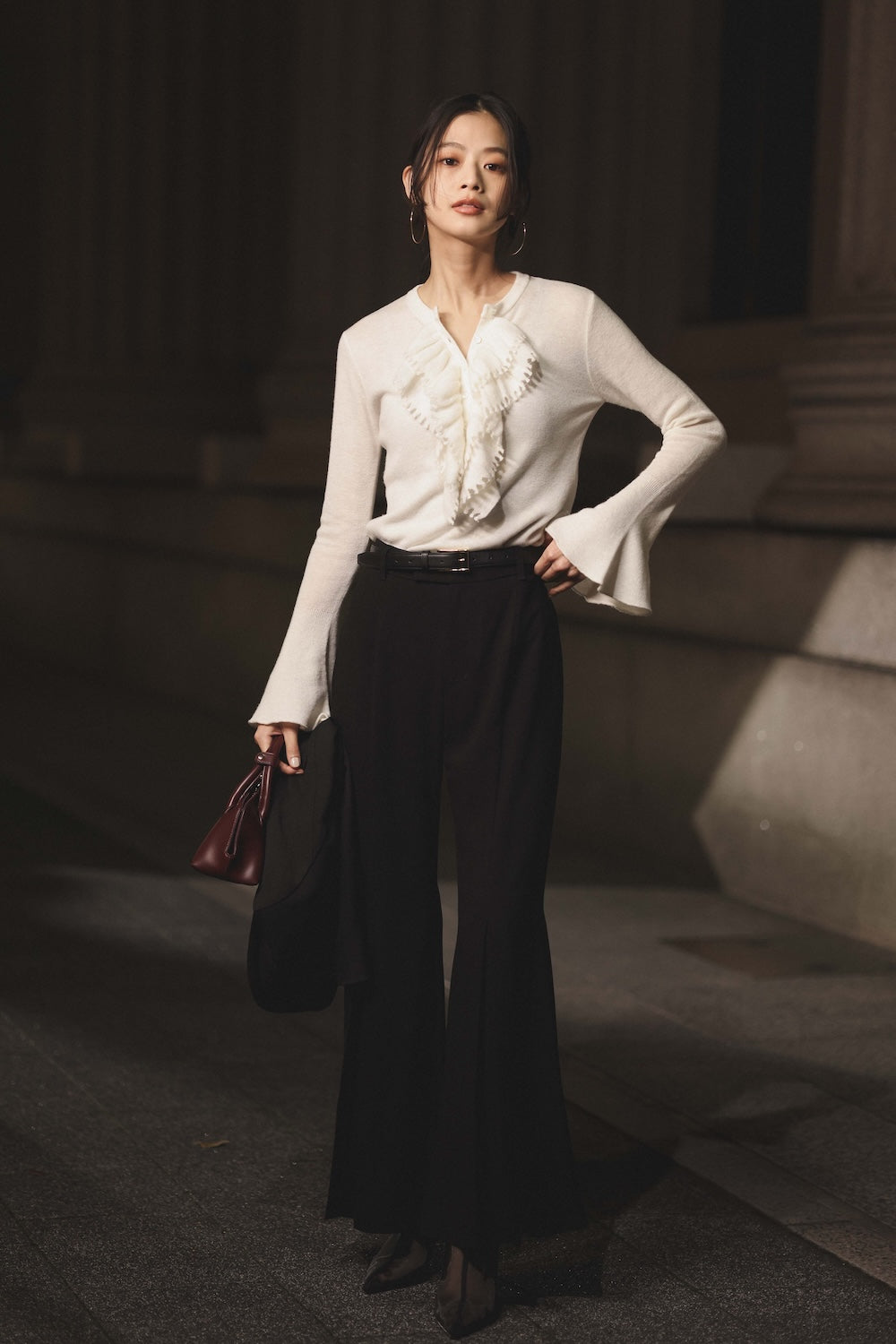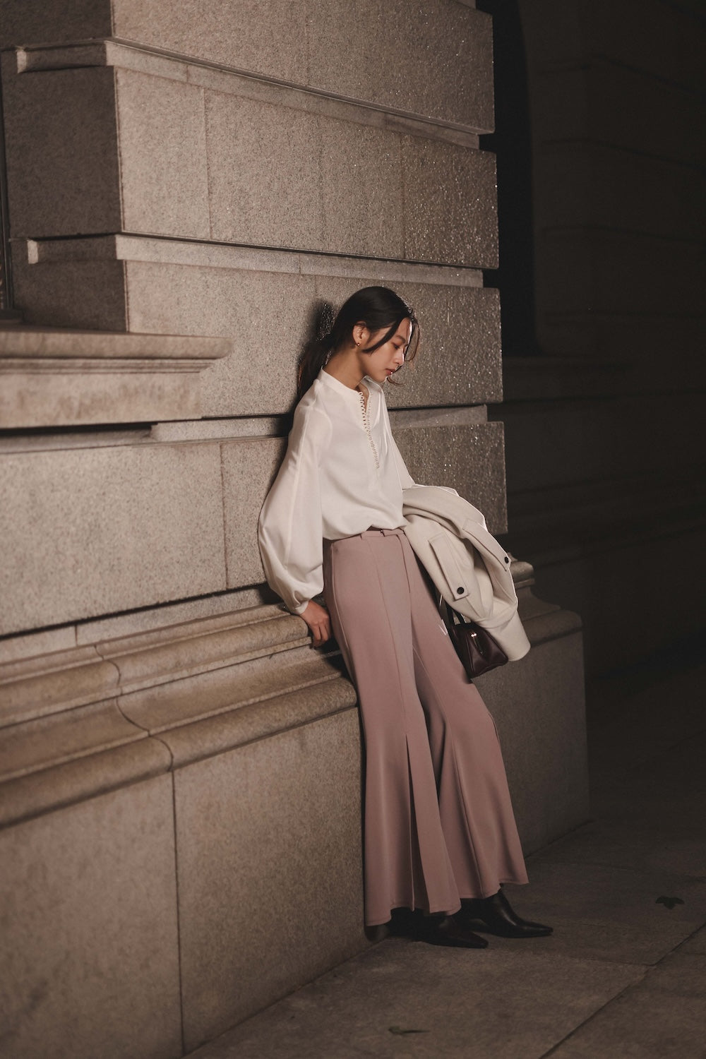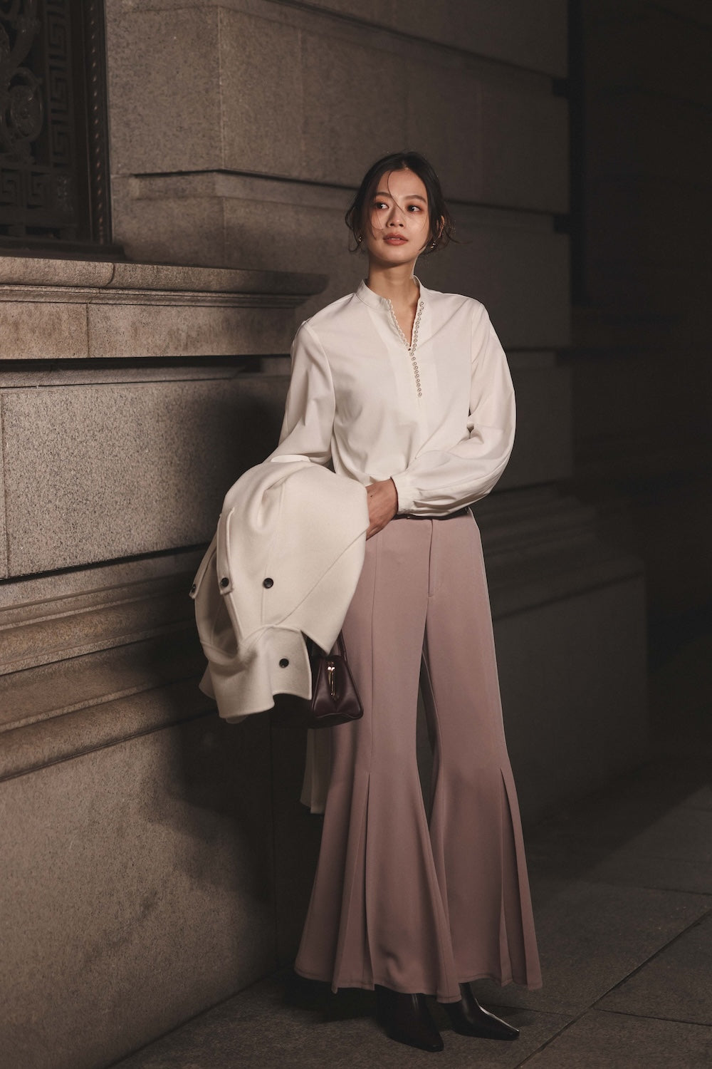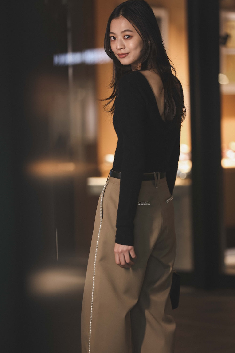 3 ) トリアセバックサテンフレアパンツ