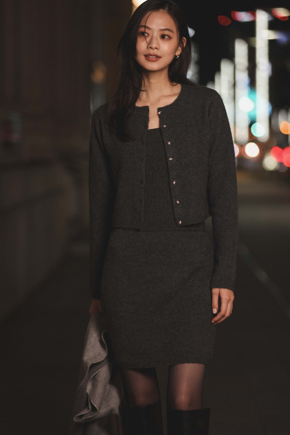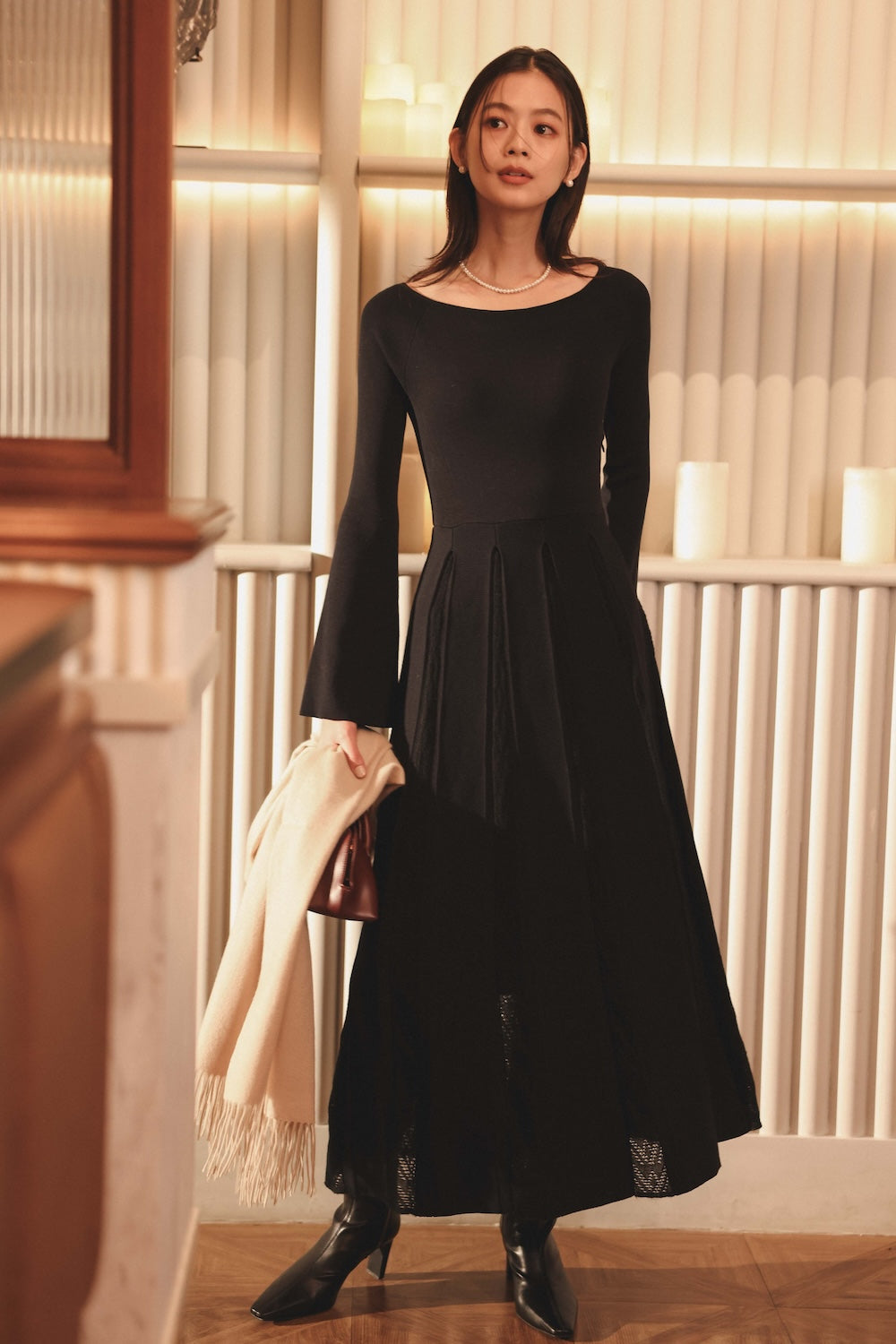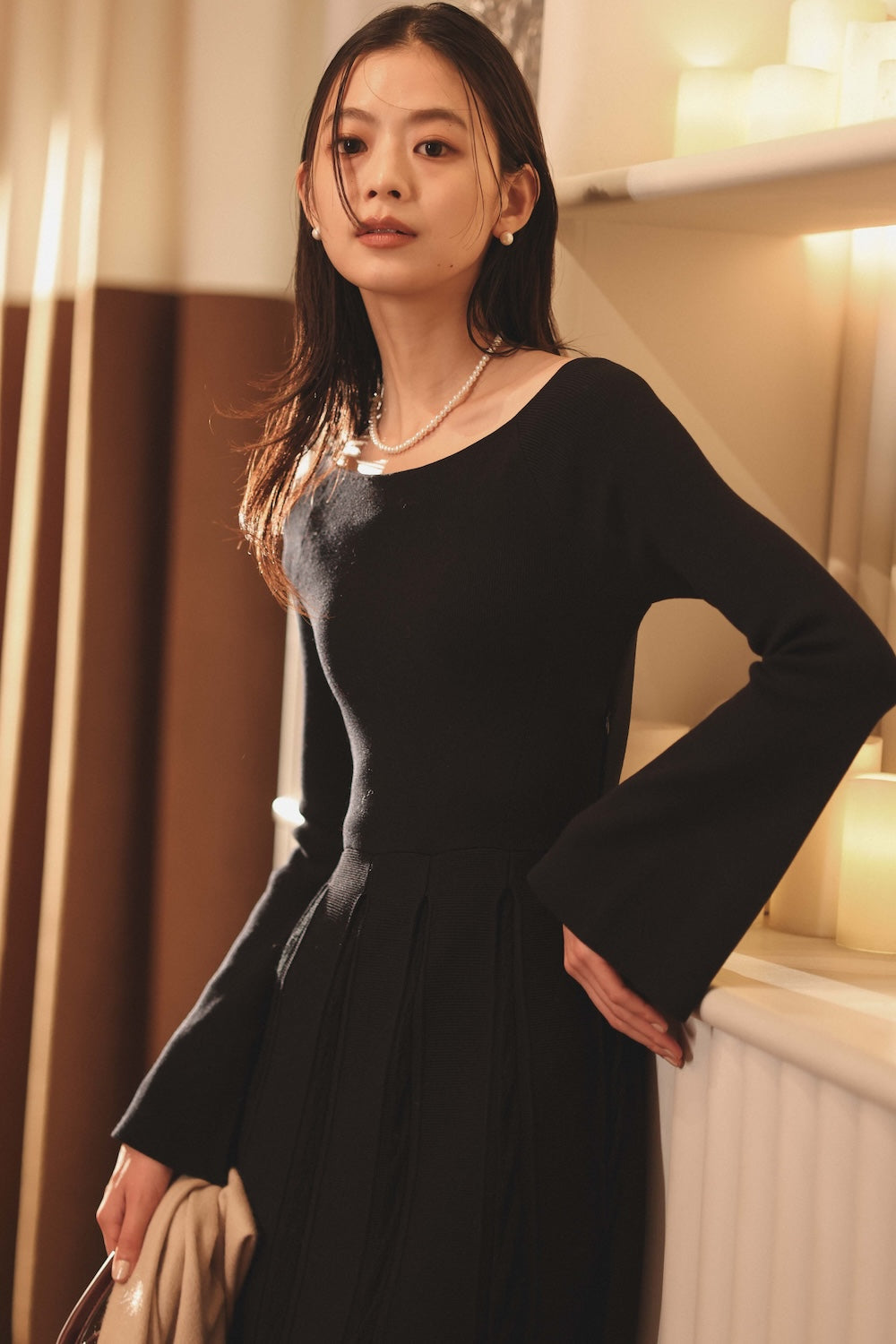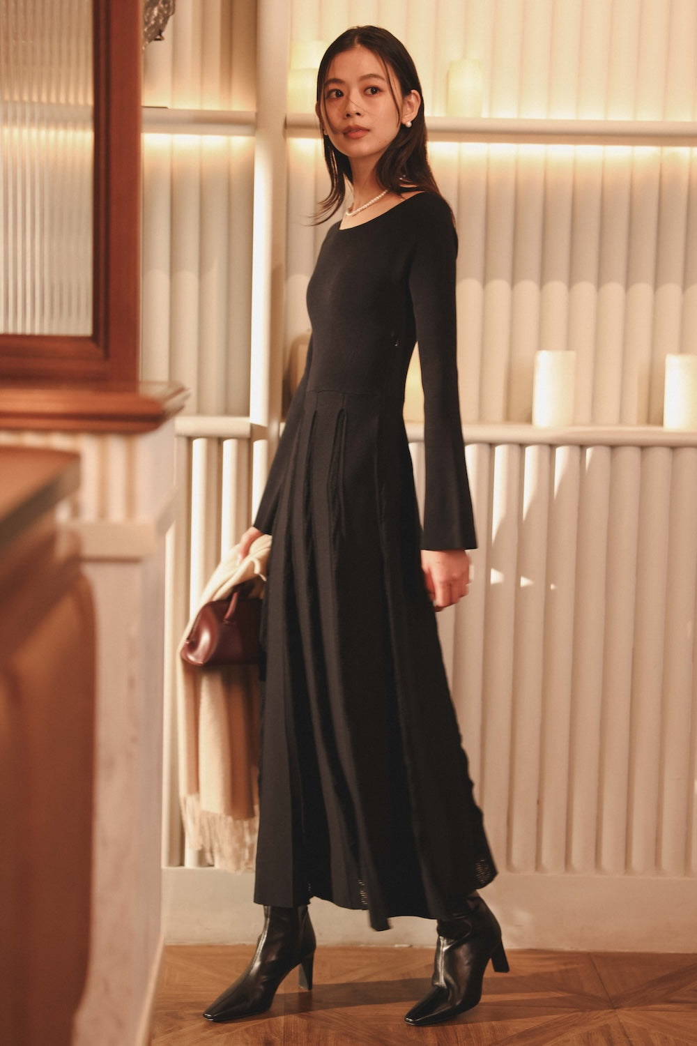 13 ) モヘアプリーツニットワンピース