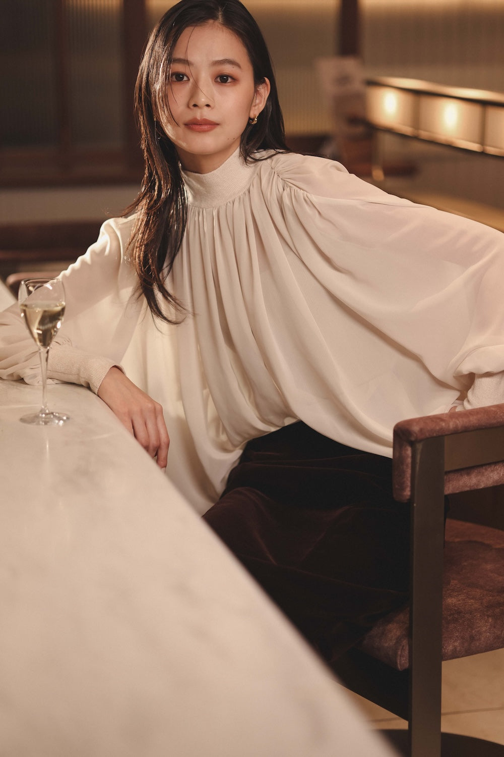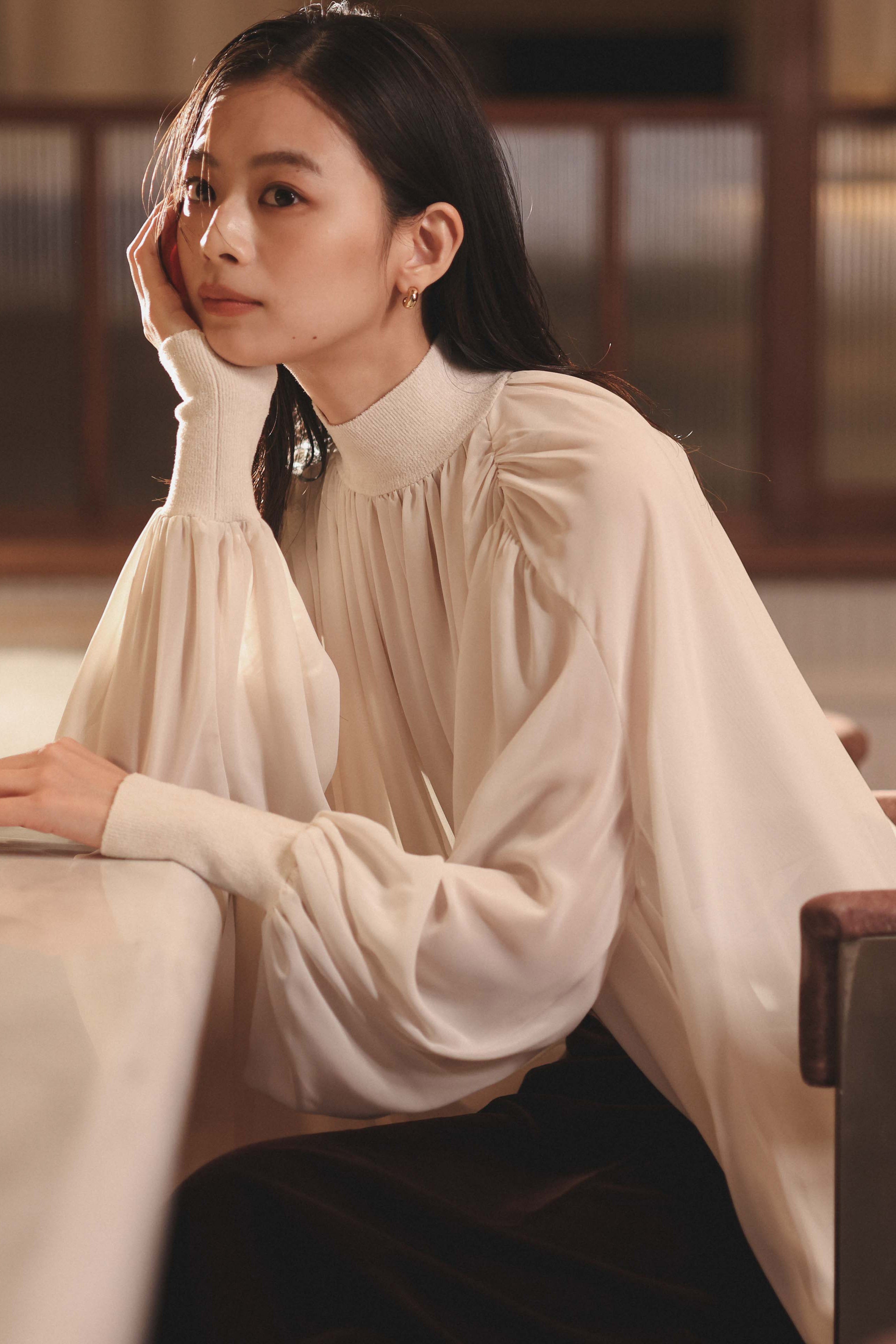 5 ) ジョーゼットフレアブラウス