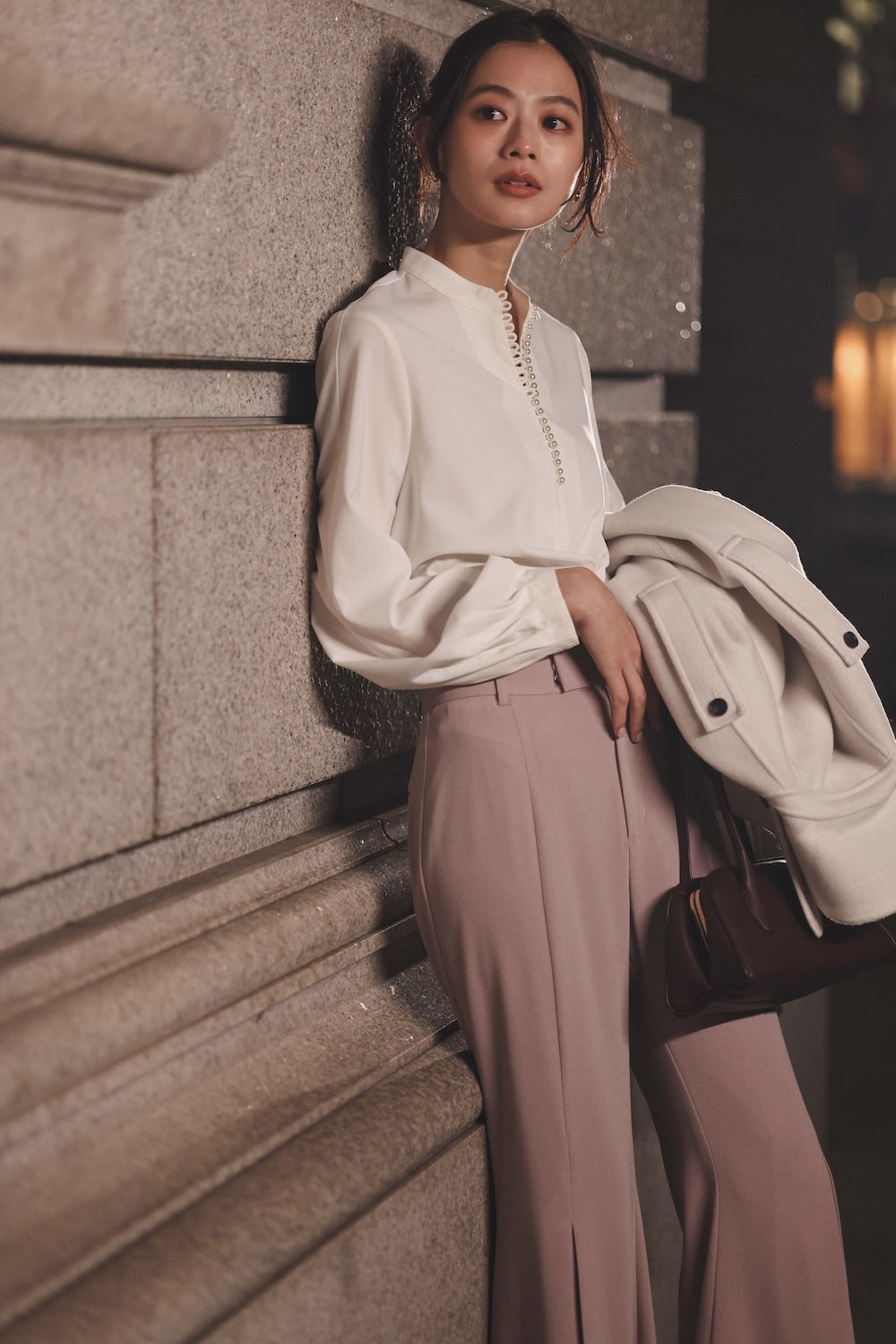 10 ) パールトリムブラウス